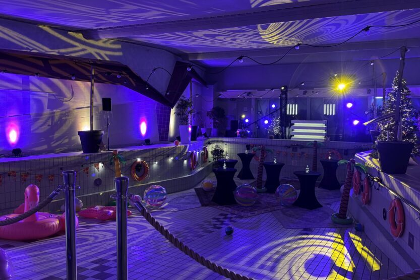 Uiteraard is deze ruimte gemoderniseerd en ingericht anno nu met comfortabele stoelen, de nieuwste techniek, een heerlijke coffee corner, loungeplekken, gezellige verlichting en healthy catering. Achtergrondmuziekje erbij en je event valt zeker niet in het water;). De oorspronkelijke inrichting met reddingsboeien, zwemhaak, strandstoelen en de originele tegeltjes zijn ook nog helemaal intact. Maar verder is The Pool aangevuld met huiselijke vloerkleden, gezellige zitjes, strandstoelen, flamingo’s, strandballen en een eigen bar. Hier kan een geluidsinstallatie met microfoon aan worden toegevoegd voor een gezellige touch, je kunt zo je eigen achtergrondmuziek bij jouw borrel, receptie of event kiezen.